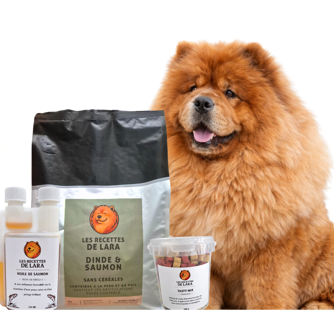 Chez Les Recettes de Lara, nous croyons qu'une bonne santé commence dans la gamelle. Nos recettes sont élaborées avec des ingrédients rigoureusement sélectionnés, pour offrir à votre chien une alimentation complète, naturelle et parfaitement équilibrée.