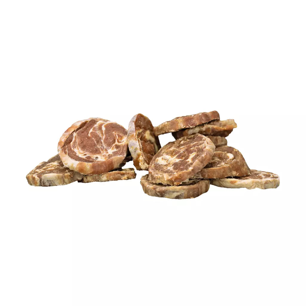 Les délicieux Soft Snacks de Braaaf sont fabriqués à partir d'ingrédients de première qualité et font l'objet d'un contrôle quotidien strict en termes de qualité et d'hygiène. Les chiens ont un besoin naturel de mastication d'environ 30 minutes par jour ; la mastication favorise l'hygiène bucco-dentaire, contribue à la santé mentale et procure de la détente. Grâce à leur texture douce, les Soft Snacks conviennent aux chiens de tous âges, des chiots aux seniors, et sont idéaux pour les chiens ayant un estomac sensible ou un régime alimentaire particulier.